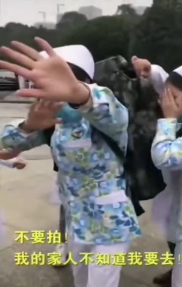 “不要拍!我的家人不知道我要去!”重慶市江津區(qū)中醫(yī)院廣場前,看到鏡頭,兩名即將出征的護士妹妹急忙捂住了臉,不想讓家人擔心。 受訪醫(yī)院供圖 華龍網發(fā)
