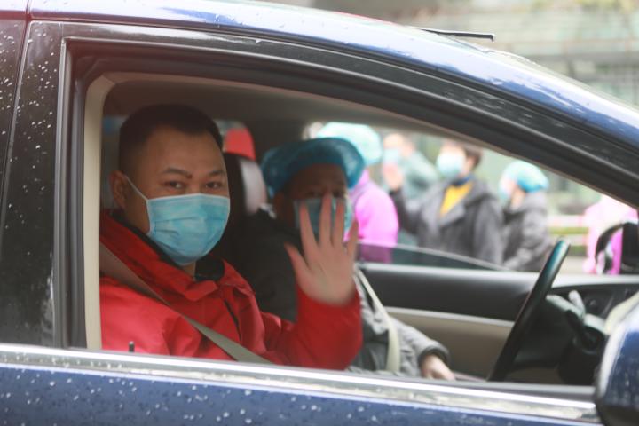 即將出發(fā)去機場,綦江區(qū)人民醫(yī)院的急診醫(yī)學科醫(yī)生鄧川向車窗外家人揮手道別。 受訪醫(yī)院供圖 華龍網發(fā)