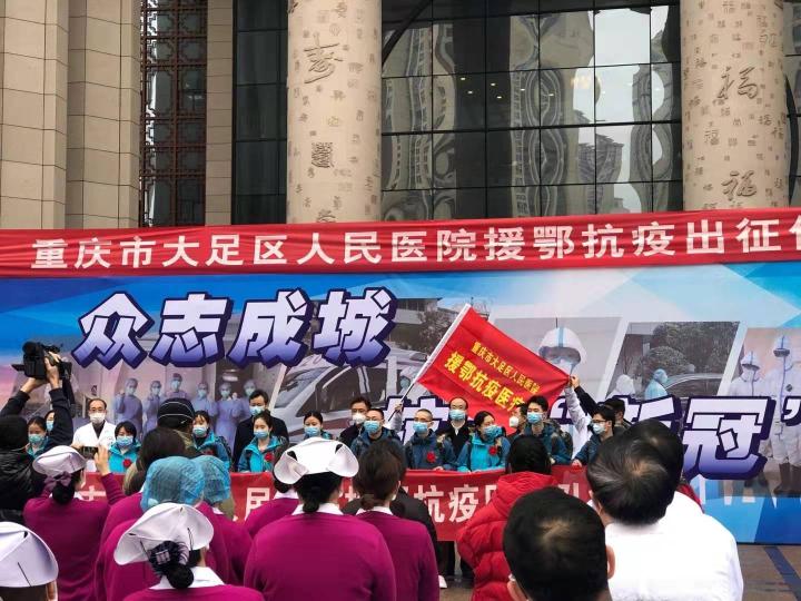 重慶市大足區(qū)人民醫(yī)院援鄂醫(yī)療隊出征。 受訪醫(yī)院供圖 華龍網發(fā)
