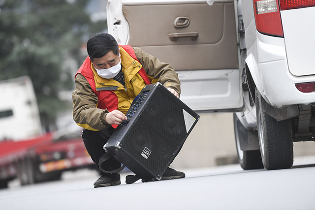 2月4日,工作人員在重慶市云陽縣巴陽鎮永利村調試用于疫情防控宣傳的擴音設備。 新華社記者王全超攝