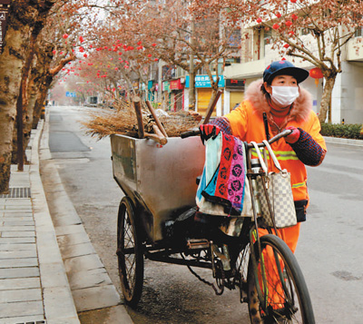 2月5日,湖北恩施市容環(huán)衛(wèi)管理局的環(huán)衛(wèi)工作者在清掃城市道路,維護(hù)環(huán)境衛(wèi)生。