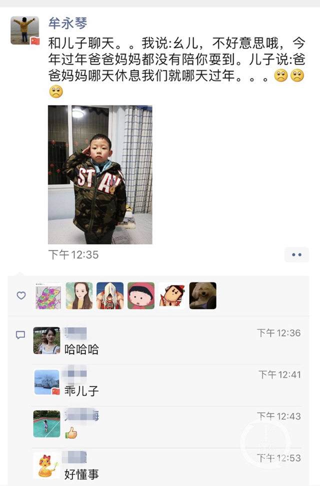 “爸爸媽媽哪天休息,我們就哪天過年。”牟永琴原本以為兒子會哭鬧不止,沒想到兒子竟說出這樣一句話。
