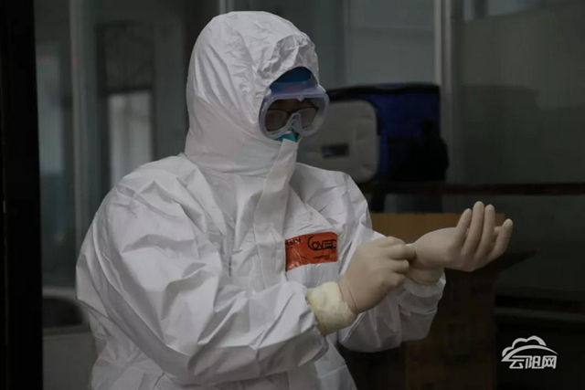 穿戴口罩、護目鏡、頭套、防護服……從準備病理實驗工作那一刻起,一切都變得嚴謹和嚴格,穿戴順序不能有誤,每一個細節都必須一絲不茍。為了拍攝工作,小編和檢驗科的工作人員一樣,也穿上了這一套裝備,短短幾分鐘就已經大口喘氣,很難想象工作人員著裝工作8個小時以上,會是一個怎么樣的狀態。