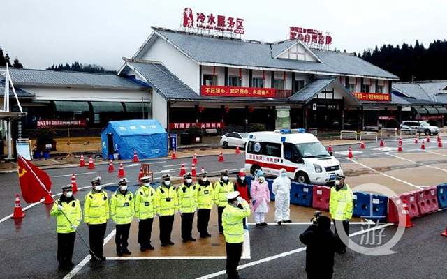 冷水服務區是G50高速由湖北進入重慶的必經之地,距離湖北省邊界僅有400米。自新型冠狀病毒感染的肺炎疫情爆發以來,重慶交通執法總隊全體執法人員堅守一線,在重慶市高速公路所有省際入口對有關車輛及駕乘人員實行全面管控。