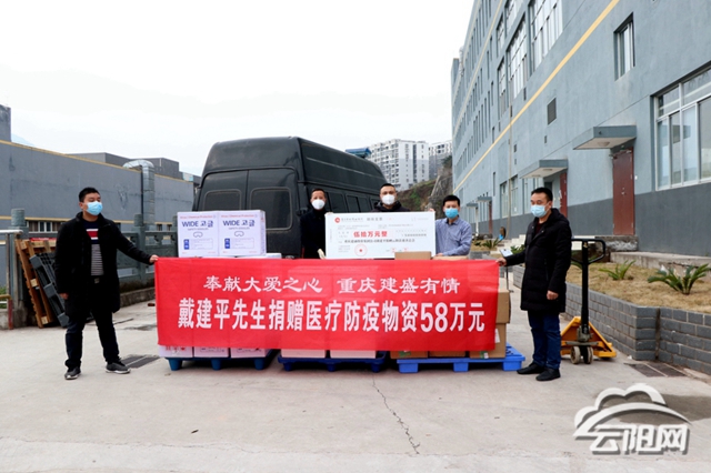 重慶建盛投資集團有限公司董事長戴建平、總經理熊文都是在外創業的云陽人。1月24日,他們得知家鄉防控物資短缺的情況后,幾乎是徹夜難眠。大年初一,戴建平組織召開視頻會議布置了馳援家鄉的事宜,率先為云陽捐贈50萬元現金,同時又和熊文一起,開始動用所有的人脈資源緊急采購防護物品。隨著全國疫情阻擊戰的打響,醫用物資開始出現緊缺,熊文說,采購途中最大的困難就是全國物資緊缺,這一批物資動用了極大的人力和財力,集團四處聯系資源,甚至發動海外的朋友來收集。