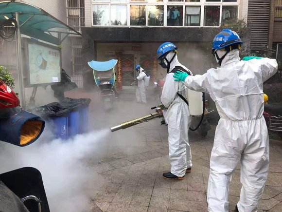 每人身背50余斤重消毒器材 足跡踏遍萬(wàn)州大街小巷