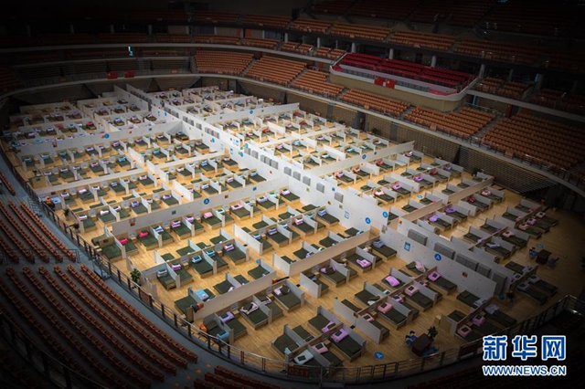2月12日拍攝的武漢體育中心方艙醫(yī)院。 新華社記者 肖藝九 攝