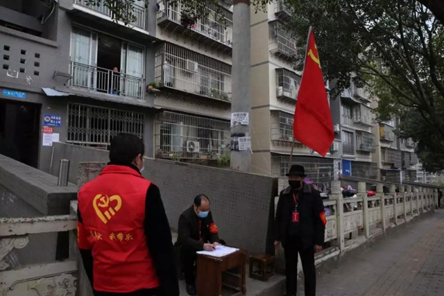 一瞬間,一個個紅色的身影如衛兵般駐守在全縣各大小區、樓棟、居民庭院。一張桌子,一把椅子,一份宣傳登記資料,在黨旗的襯映下,共同組成了一個個微型防控據點。盤問過往車輛、登記出入行人,量體溫、做宣傳、搞巡邏,黨員志愿者們充分發揮先鋒模范作用,帶領社區志愿者嚴格把關、敢于逗硬,用黨性筑牢一道又一道堅實的樓院防線,確保了居家防護(隔離)更有力、更有效。