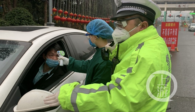 2月19日,上游新聞·重慶晨報記者從主城趕往南川,高速下道口,在檢測了體溫,出示了身份證和工作證并登記,拿到“檢疫通行條”后,才能進入南川城區進行采訪。這也是南川區9個高速公路互通的3個檢測站之一。