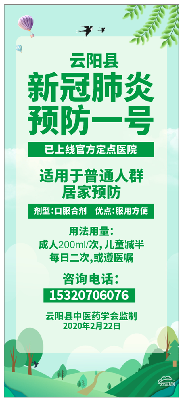 2月22日,云陽縣新冠肺炎疫情防控工作領(lǐng)導小組醫(yī)療救治組,根據(jù)國家衛(wèi)生健康委辦公廳、國家中醫(yī)藥管理局辦公室《關(guān)于印發(fā)新型冠狀病毒肺炎診療方案(試行第六版)的通知》等有關(guān)文件,組織云陽縣中醫(yī)藥學會專家組召開關(guān)于進一步加強新型冠狀病毒肺炎中醫(yī)藥救治工作專題會,經(jīng)研討決定,在原制定的云陽版“新冠肺炎預防處方”基礎上,再次開出針對云陽普通人群預防新冠肺炎的中藥預防處方。