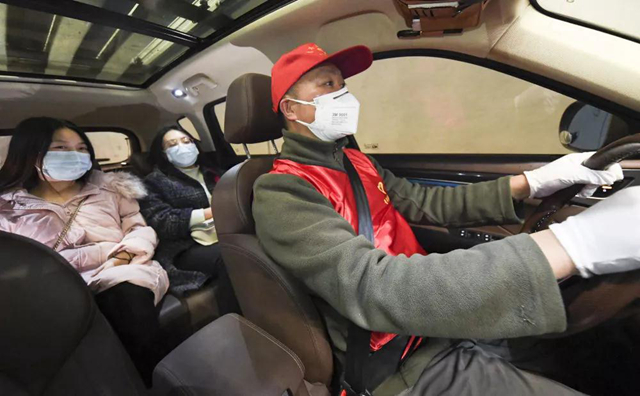 2月6日晚,重慶市云陽(yáng)縣“疫情防控”志愿服務(wù)車隊(duì)志愿者郭高平開車送云陽(yáng)縣人民醫(yī)院的醫(yī)護(hù)人員上夜班。新華社記者 王全超 攝
