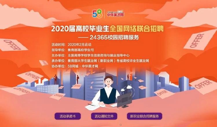 據了解,此次活動由教育部高校學生司指導,教育部全國高等學校學生信息咨詢與就業指導中心主辦,教育部大學生就業網(新職業網)、各省級高校畢業生就業網承辦,前程無憂、智聯招聘、BOSS直聘、中華英才網、獵聘網等五家社會招聘網站協辦。新職業網負責管理統一的“24365校園招聘服務”活動平臺,五家社會招聘網站在各自平臺開辟“24365校園招聘服務”專欄,初期預計提供就業崗位信息80余萬條。
