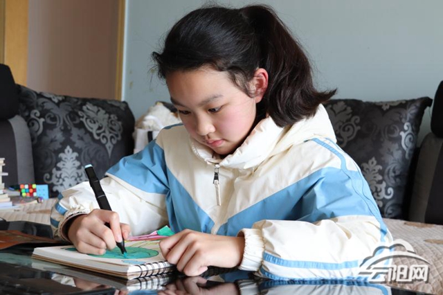 在杏家灣社區一小區內,青龍小學五年級學生李書媛坐在電腦前,聚精會神地收看著這場特殊的植樹活動,隨后展開自己豐富的想象,將一切躍然于紙上,描繪出她對美好藍天的期待與暢想。她說:“我覺得疫情是對我們的一種提示,我們不能亂殺野生動物。保護好環境,就是在保護我們人類自己。”