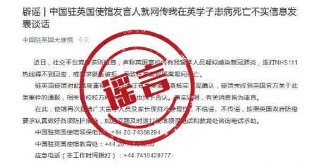 謠言3:中國留學生在英國感染新冠肺炎死亡