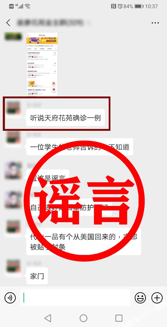經璧山區委網信辦核實,該消息為不實信息。璧山區并無天府花苑小區,只有天湖花園小區,且該小區并無新增確診病例。