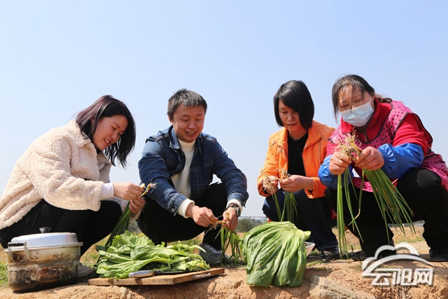 在大石村蟠桃園,魚塘邊垂釣者們?yōu)⒚摀P(yáng)竿垂釣,一副“任爾西北風(fēng),獨(dú)釣寒江雪”的閑情逸致。還有的在田間支起烤架,紛紛動(dòng)手,忙得不亦樂乎,現(xiàn)場(chǎng)歡聲笑語,其樂融融。“新年以來憋了好久,今天太陽這么好,我們大家一起出來賞春光,看桃花,一起去地里挖野菜,又一起煮飯吃,我們今天很開心。”游客范鐵礪說。