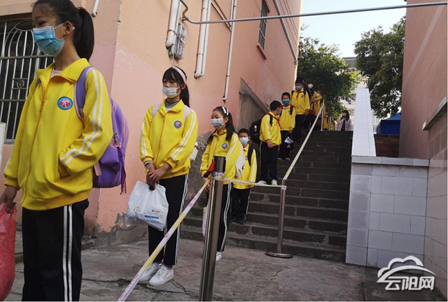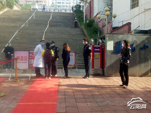 云陽網(wǎng)訊(通訊員 譚琰)“慢點,莫聚集,莫聊天,保持同學(xué)間距離1米遠!”4月27日,渠馬鎮(zhèn)渠馬小學(xué)迎來復(fù)學(xué)第一天。在社區(qū)文化廣場路口,鎮(zhèn)政府相關(guān)負責人指揮學(xué)生有序進校門。