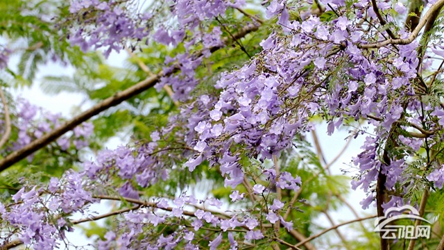 云陽網訊(陳小婭)伴著五月熱烈的陽光,月光草坪藍花楹盛開了,夢幻浪漫的花朵為公園錦上添花,美不勝收。來到月光草坪的藍花楹大道,只見一株株高大挺拔的藍花楹樹冠上盛開著茂密的花朵。藍紫相間的朵朵小花,擠擠挨挨,細細密密,盛開在枝頭,蕩漾在風中,猶如一串串風鈴。在夢幻浪漫的花海見證下,月光劇場上一對幸福的新人正喜氣洋洋地舉辦婚禮。