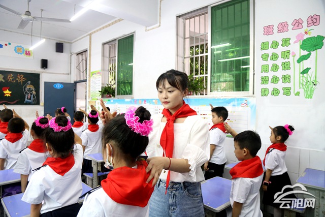 在一年級各班的教室里,268名孩子在輔導(dǎo)老師的帶領(lǐng)下,學(xué)習(xí)系帶紅領(lǐng)巾,握緊右拳,莊嚴宣誓,光榮地加入中國少年先鋒隊。