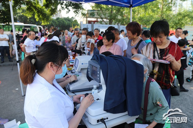 “阿姨,您這個是白內障,要去醫院做手術才行?!薄按鬆?,平時少抽煙少喝酒,對您眼睛有好處。”……縣中醫院的眼科醫生為前來咨詢問診的市民一一解疑答惑。聞訊而來的群眾絡繹不絕,醫護人員依次為大家進行視力檢測、眼病咨詢和老年人常見眼病角膜炎、青光眼、翼狀胬肉、白內障等篩查,并針對篩查的患者進行眼健康知識宣傳。