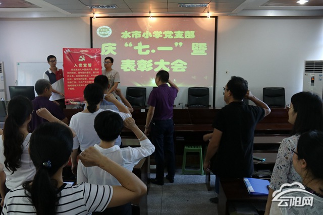 云陽網訊(通訊員 朱偉 朱云鴻)“99年的風雨兼程,99年的輝煌歷史。99年的驚濤駭浪,99年的開拓進取……”黨員們誦詩賽歌獻禮黨的生日。近日,水市小學隆重舉行慶祝建黨99周年暨表彰大會。