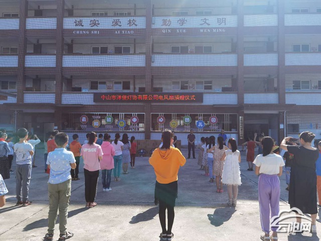 中山市洋俊燈飾有限公司負責人陶勝祖籍是云陽鎮古寺村居民,得知云陽鎮三所小學教室都沒有安上電風扇,立即向三所小學捐贈了這批價值上萬元的電風扇,給孩子們營造舒適的學習環境。他希望孩子們努力學習,將來有機會回報母校、回報社會。他還表示,今后將在云陽投資建廠,助力家鄉經濟發展。