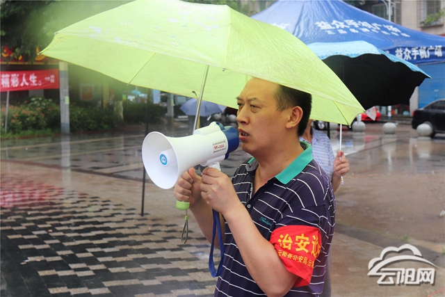 在江口鎮(zhèn)濱河廣場,為應(yīng)對降雨帶來的水位急漲,社區(qū)組織黨員干部在廣場拉上警戒線,堅持在一線巡邏,排查隱患,確保群眾生命財產(chǎn)安全。