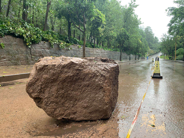 來自縣氣象局的信息顯示: 7月15日晚上8:00至7月18日下午6:00,我縣城區累積降雨量達183.7毫米 ,16、17日連續兩天達到暴雨級別。受此影響,我縣城區多條主次干道、多個公園和小游園受災,山體滑坡、塌方、落石以及樹木、路燈倒塌等災害事故共計21處,所幸未造成人員傷亡。災情發生后,縣城管部門聯合縣住建委、交巡警大隊等部門,分成多個小組分赴各受災點開展巡查和清障、排險?!芭挪楫斨心芗皶r清障和排險的 ,及時組織人員和機具進行全面清障排危,現場沒有條件解決的 ,及時組織人員拉警戒線 ,設置警示標牌和隔離欄 ,最大限度保障道路交通安全和行人安全?!笨h城管局副局長 羅倫介紹清障排險舉措。