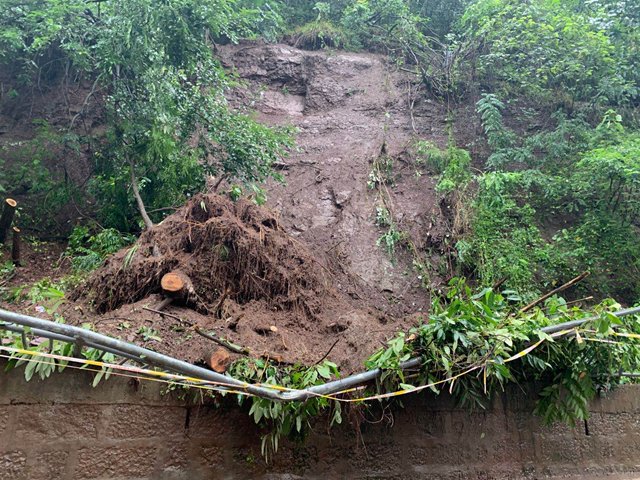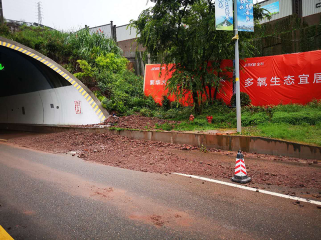 今天(7月18日)下午四點多鐘,記者在迎賓大道加氣站至云商大廈段看到,幾名工人正在對塌方的泥石進行清理,道路已經恢復暢通。此處受災點于17日晚上發生山體塌方事故,路面被落石和淤泥阻斷,人行道受損。