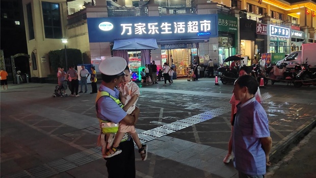 當(dāng)交巡警在與小男孩語(yǔ)言溝通中無(wú)法獲知有效信息時(shí)。袁桂華只得將男孩的衣著特征等信息向指揮中心上報(bào),指揮中心要求立即用警車(chē)上的警用鳴笛和喇叭呼叫一下,同時(shí)發(fā)動(dòng)群眾擴(kuò)大找尋范圍。