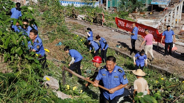 云陽網訊(記者 王彬彬 洪琳)8月4日,在迎賓大道云商大廈附近的“菜園地”,記者看到居民自建的菜地有的用磚塊砌成,有的用泡沫箱圍擋放泥土搭建,還搭起了架子、保溫棚等讓瓜果生長,菜園里蚊蟲滿天飛,污水橫流,整個環境呈現著臟、亂、差。鏟除現場,執法人員冒著炎熱,手持鋤頭等工具,對菜園地進行清理,一片忙碌景象。