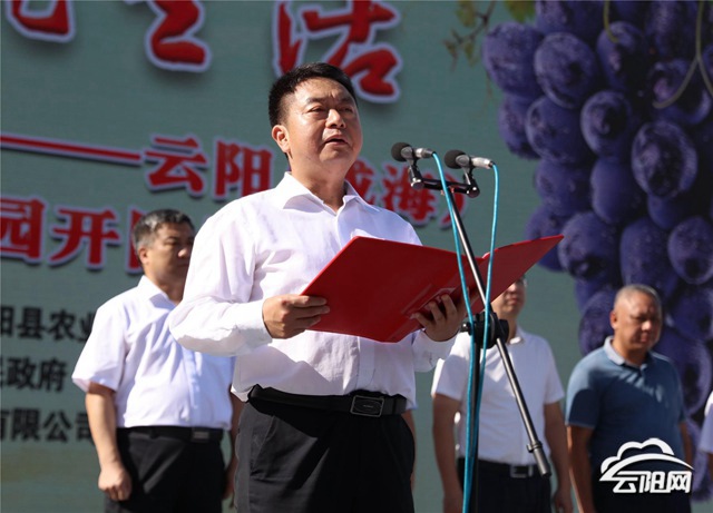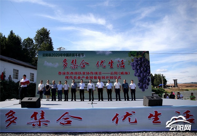 云陽網(wǎng)訊(記者 趙曉龍 朱學徽)“我宣布,云陽·威海多集合現(xiàn)代農(nóng)業(yè)菜籃子小程序上線、多集合園葡萄園開園、云陽縣2020年中國農(nóng)民豐收節(jié)正式開幕!”8月15日,云陽縣2020年中國農(nóng)民豐收節(jié)暨魯渝東西部扶貧協(xié)作項目——云陽·威海多集合現(xiàn)代農(nóng)業(yè)產(chǎn)業(yè)園葡萄園開園儀式在鳳鳴鎮(zhèn)馬軒村舉行,副縣長劉桂虎宣布開園,縣政府黨組成員劉正杰參加活動。