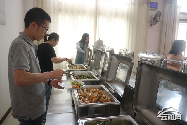 云陽網訊(通訊員 潘閱)8月18日中午12點剛過,鳳鳴鎮機關食堂便開始有職工前來就餐了,大家有序排隊按需取餐。在食堂的墻上、餐桌上,各類倡導“光盤”的宣傳語更是隨處可見。