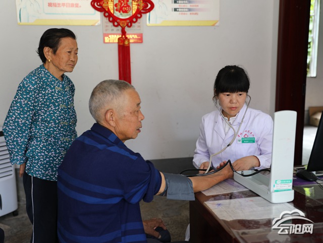 “最近天氣變化大,您身體有哪些不舒服?要記得按時服藥哈。”夏日清晨,寶坪鎮雙壩村的一農家院落里,一位女村醫正在給老人們測量血壓,做健康體檢,講解保健知識,輕聲細語交談。