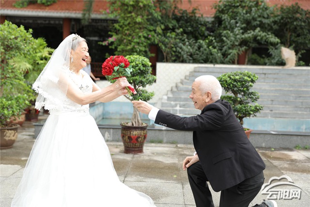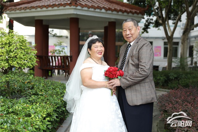 據(jù)了解,這6對老夫妻中,有的是兩人形影相伴的空巢老人,也有是失去唯一孩子的失獨老人。在時代的大背景下,老人們當(dāng)年結(jié)婚有的是父母之命、媒妁之言、也有的是青梅竹馬、自由戀愛。伍玉梅,喻吉現(xiàn)老人就屬于自由戀愛,兩人相識于沙市鐵廠,他們從相識,相知,相愛到進(jìn)入婚姻生活用了1年的時間。時至今日,他們已經(jīng)走過了60個年頭。伍玉梅今年82歲,喻吉現(xiàn)今年也剛滿86歲。面對以后,伍玉梅表示只想陪著她的老頭子走完余生。福利院社工袁東瓊告訴記者,對于老年夫妻來說,在他們的一生中沒有穿過婚紗,也沒有拍過婚紗照,城鄉(xiāng)社會福利院組織此次活動想圓老人們一個婚紗夢。