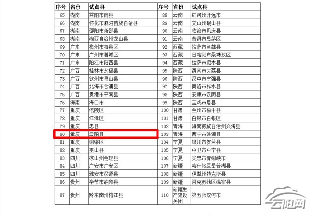 云陽網訊(實習生 李歆宇)近日,農業農村部公布110個“互聯網+”農產品出村進城工程試點縣名單。其中,重慶市6個,云陽榜上有名。