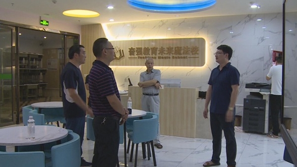 當天,執法人員來到奮強教育未來魔法校區、百年教育金科分校和啟航教育金科校區等地,逐項檢查校外培訓機構在消防安全、治安防控、無證辦學、超范圍經營等工作開展情況。執法部門根據各自職責對存在問題的校外培訓機構分別下達整改意見書,責令相關負責人限時整改落實。