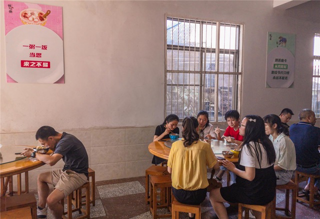 普安鄉政府機關和鄉屬單位各食堂,在醒目位置都張貼著“一粥一飯當思來之不易,勤儉節約習慣永遠不能丟”等宣傳標語。職工們有序排隊,按需取餐,禁止交頭接耳和大聲喧嘩。