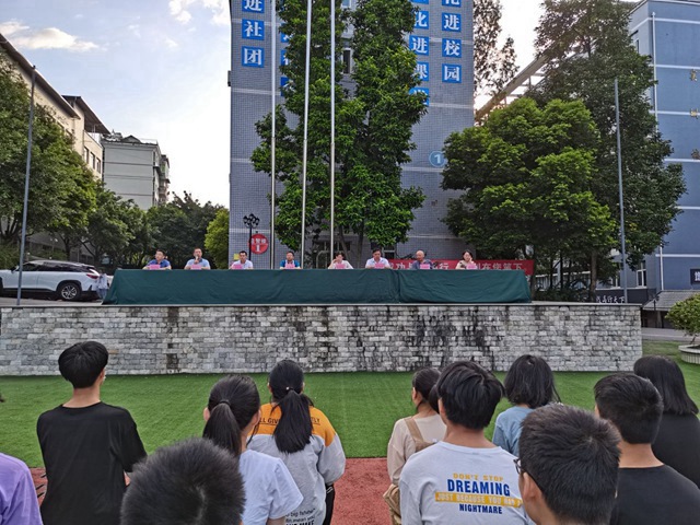 云陽網訊(通訊員 張小林)五分鐘能做什么,五分鐘能講些什么?9月3日上午,云陽職教中心對2020級新生進行入學教育,上好“開學第一課”。操場上,1200余名學生正襟危坐,洗耳恭聽,教務處、學生處、生習處、體藝處等7名處室負責人分別用五分鐘時間對學生進行學習適應性和生活適應性、校規校紀、專業思想、安全穩定、疫情防控、身心健康教育。