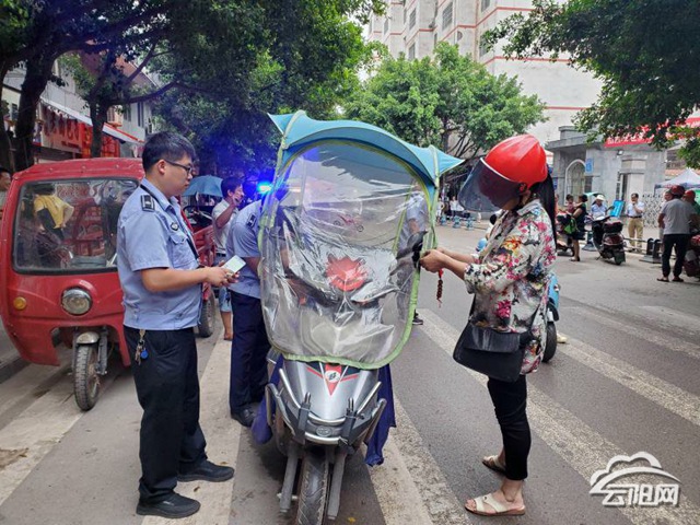 行動中,聯合小組分為兩個組,在場鎮車流量最大的兩個路段,設立流動檢查點,沒戴頭盔的、超載的現場整改,非法拼改裝的現場拆除,對查處的交通違法行為一律按照法律法規嚴格處罰。同時,為方便車主,綜合執法大隊還邀請保險公司工作人員隨同檢查,現場演示車輛如何參保。