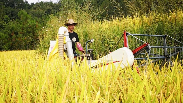 山腰上,到處都是忙碌的收割身影,耳邊頻頻響起的“轟隆隆”聲,正訴說(shuō)著今年豐收的喜悅。