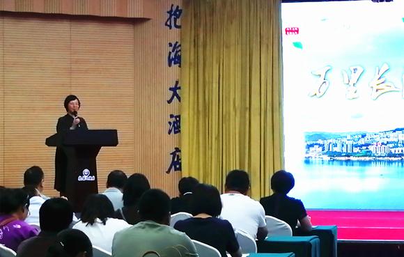 威海市文化和旅游局副局長張美麗在推介會上講話。 通訊員 黃一泓 攝 華龍網發