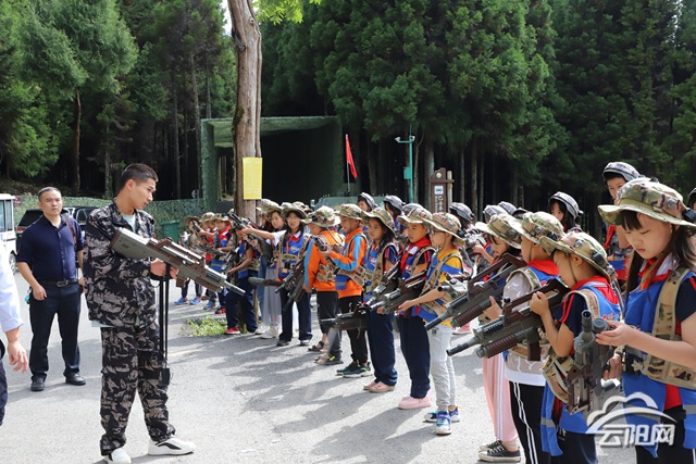 “埋伏!前方有敵軍出沒!”紅方小朋友趴伏在沙包巖體背后,雙手緊握“高端武器”,瞇著眼睛,趕緊對著“敵人”的頭盔、迷彩服上的“靶子”瞄準,扣動扳機……游戲結(jié)束,獲勝的小朋友李曉葒高興地說:“這次研學活動游戲中,我學會了團結(jié)協(xié)作,體會到了團結(jié)的力量。”