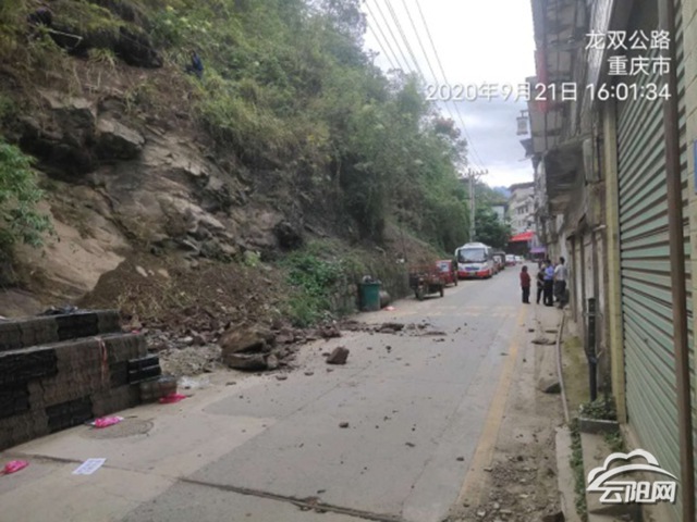 云陽網訊(通訊員 唐志廷)“你們不能過去,前面在進行山體排危。等一會施工停了再放行。”9月21日,記者在耀靈鎮大興社區興耀路看到,兩名工人正在懸崖上進行排危施工,下面不遠處,設置了路障,并有專人攔截準備過往的車輛行人。