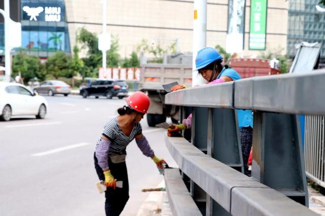 他們有的忙著橋欄的裝飾、有的忙著給橋上的護欄噴漆,整個現場呈現出一派熱火朝天的景象。