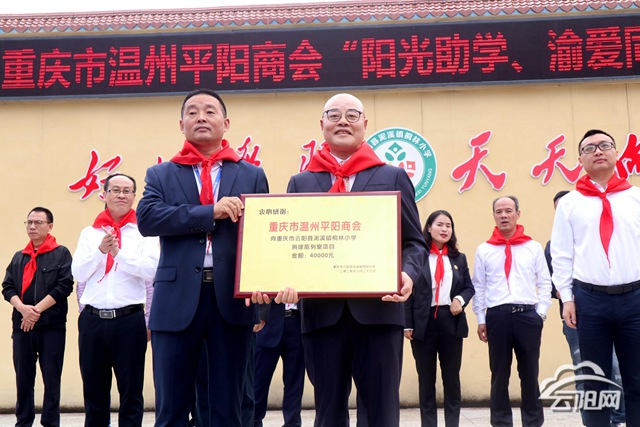 當日,重慶溫州平陽商會企業家一行,來到泥溪鎮桐林小學參觀了校園,聽取學校工作匯報,并現場給學校捐贈了4萬元的專項資金用于改善學校的教學設施設備,并資助了5名貧困學生。