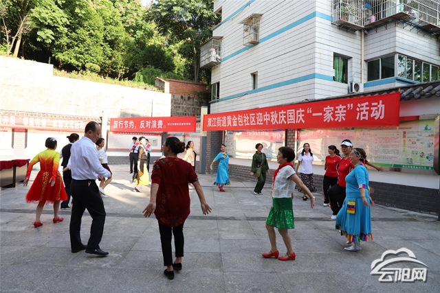 云陽網訊(記者 朱學徽 實習生 瞿利文)9月29日,雙江街道黃金包社區舉行迎中秋慶國慶“一家親”活動,共慶佳節。