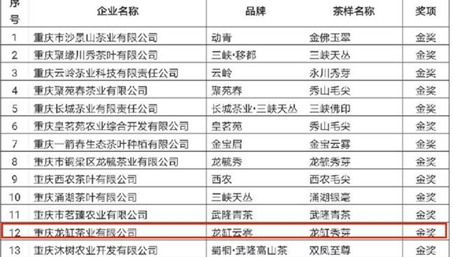 云陽網訊(記者 鄧庭庭 )9月29日,重慶市第十三屆“三峽杯”名優茶評比暨重慶市第五屆“十大名茶”評選落幕,云陽縣重慶龍缸茶業有限公司的龍缸云霧“龍缸秀芽”獲重慶市第十三屆“三峽杯”名優綠茶金獎和重慶市第五屆“十大名茶”產品榮譽。