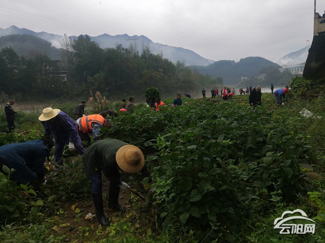 隨后,按照行動方案,全體工作人員分成三組,大家有序配合、齊心協力,將集鎮(zhèn)外圍湯溪河沿岸消落帶種植的綠植鏟除,將垃圾清理干凈,并向居民群眾廣泛宣傳保護河堤、愛護人居環(huán)境的重大意義。