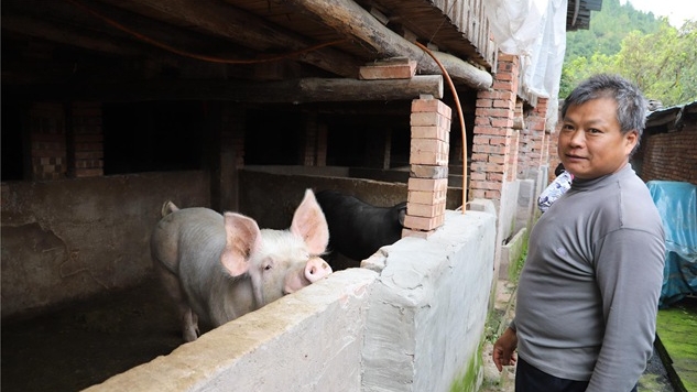 由于缺乏養(yǎng)殖技術和經(jīng)驗,養(yǎng)豬的過程并不順利。2016年,聶云東把糧倉發(fā)霉的玉米做成了豬食,結(jié)果接連死了6頭豬。困難并沒有壓垮聶云東,他決定從頭再來。沒有資金,他就找到村支兩委申請小額扶貧信貸;沒有技術,就到村里學習養(yǎng)殖技術……憑著一股不服輸?shù)捻g勁,聶云東成功摸索出一套養(yǎng)豬本領,成了行家里手。